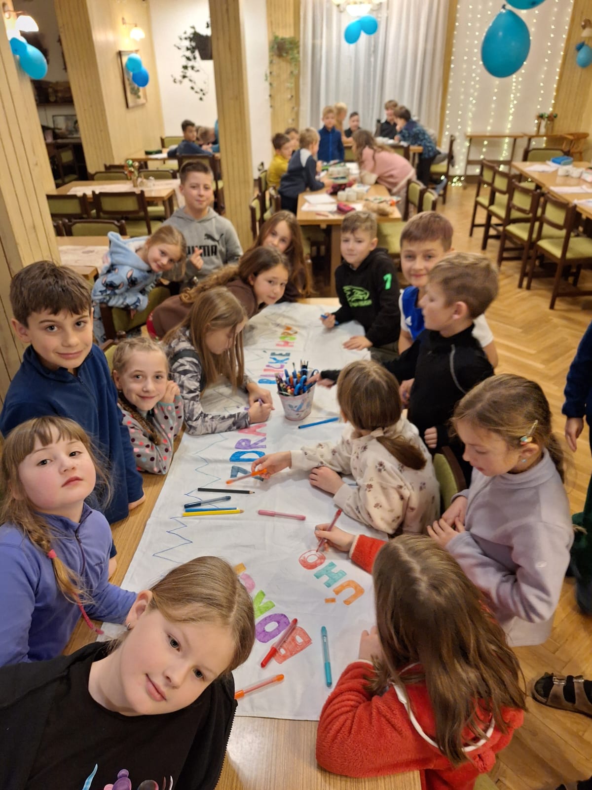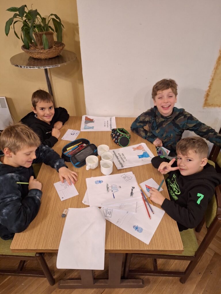 Dnes byla celý den mlha, sluníčko vykouklo jen občas. Dětem to ale vůbec neubralo na náladě. Máme se skvěle a moc zdravíme.